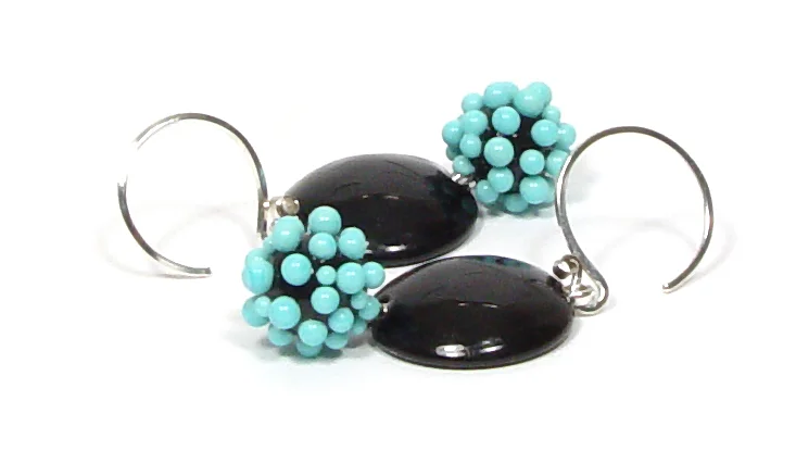 Something classically refreshing about these light turquoise dotted drops - under half-lentils (half the bead = half the weight!)… Love the fresh look - carrying you from late Summertime into Fall.