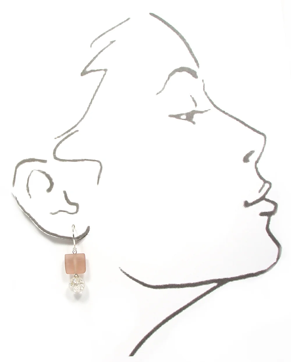 Offsetting the sparkle of the mica in the single hole drops - are two petite tiles of pinky peach - overall these are a nicely wearable pair of earrings - 1/2” squares paired with 3/8” drops - makes for nice personality - without a lot of glassy weight. I’ve started making my earwire loops a tiny bit smaller - so the drop is lessened as well. Let me know what you think of this… I aim to please… and this pleases me. : )
