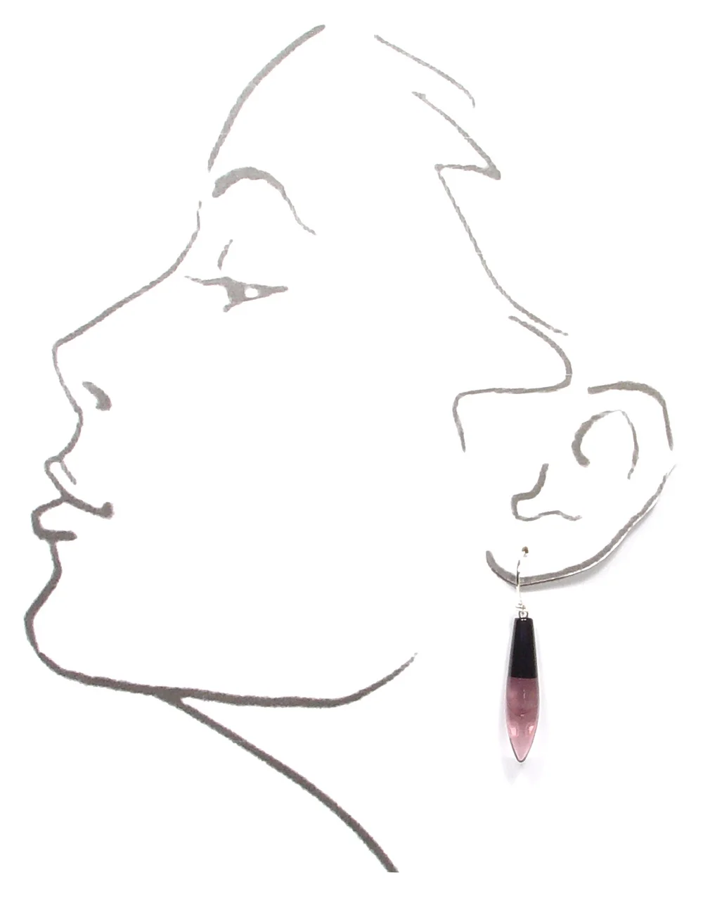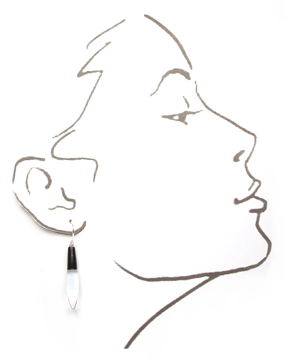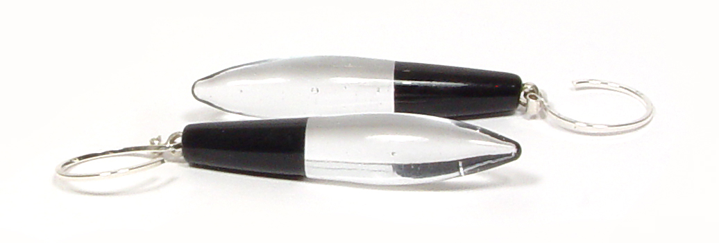 Ohhh… elegant. Timeless and so versatile. Colorless points of colorless clear capped with a slender pop of jet black. Delicate in execution - these don’t carry a lot of weight - but do command quite a presence. Sterling silver handmade ear wires